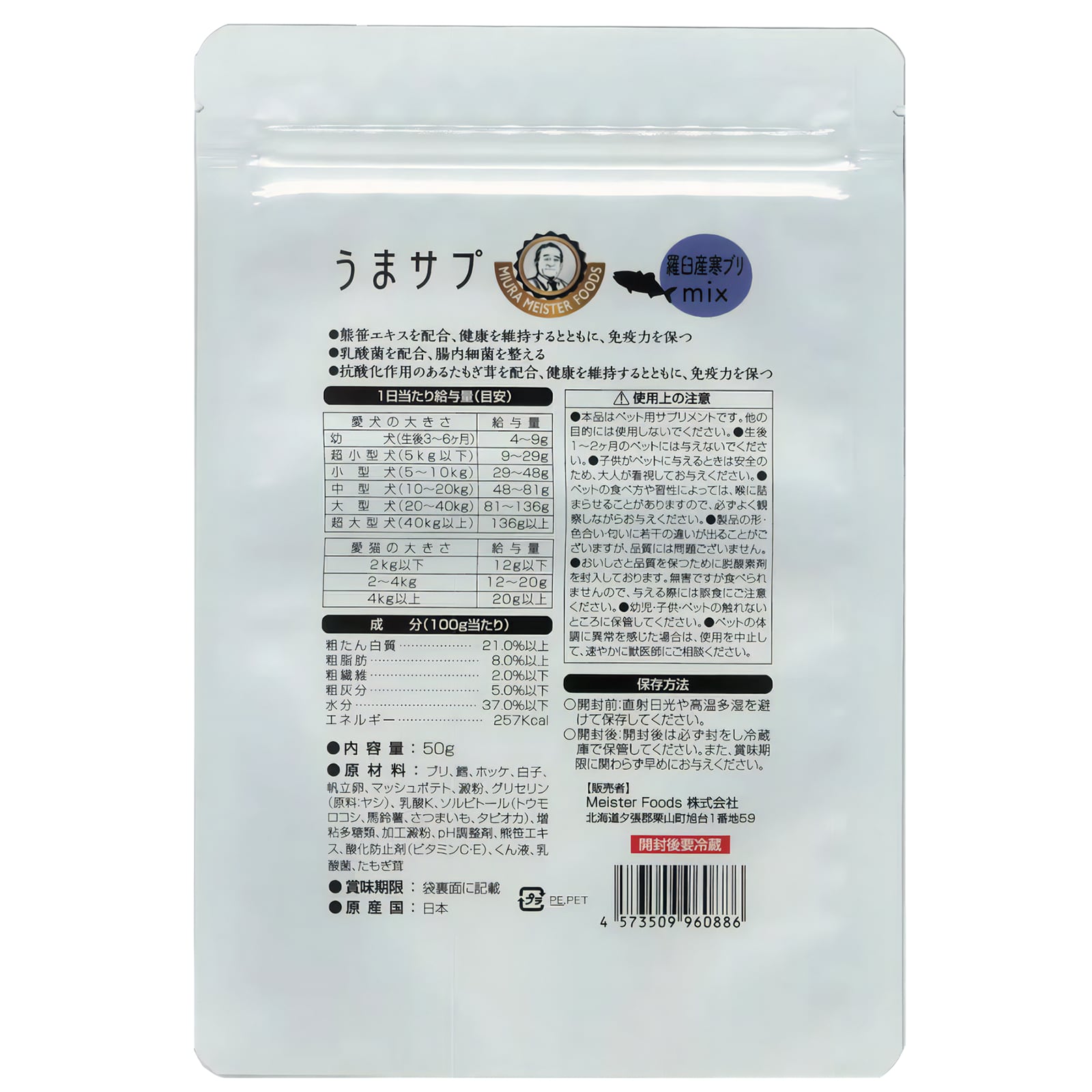 うまサプ(羅臼産 寒ブリ)犬猫用 2袋