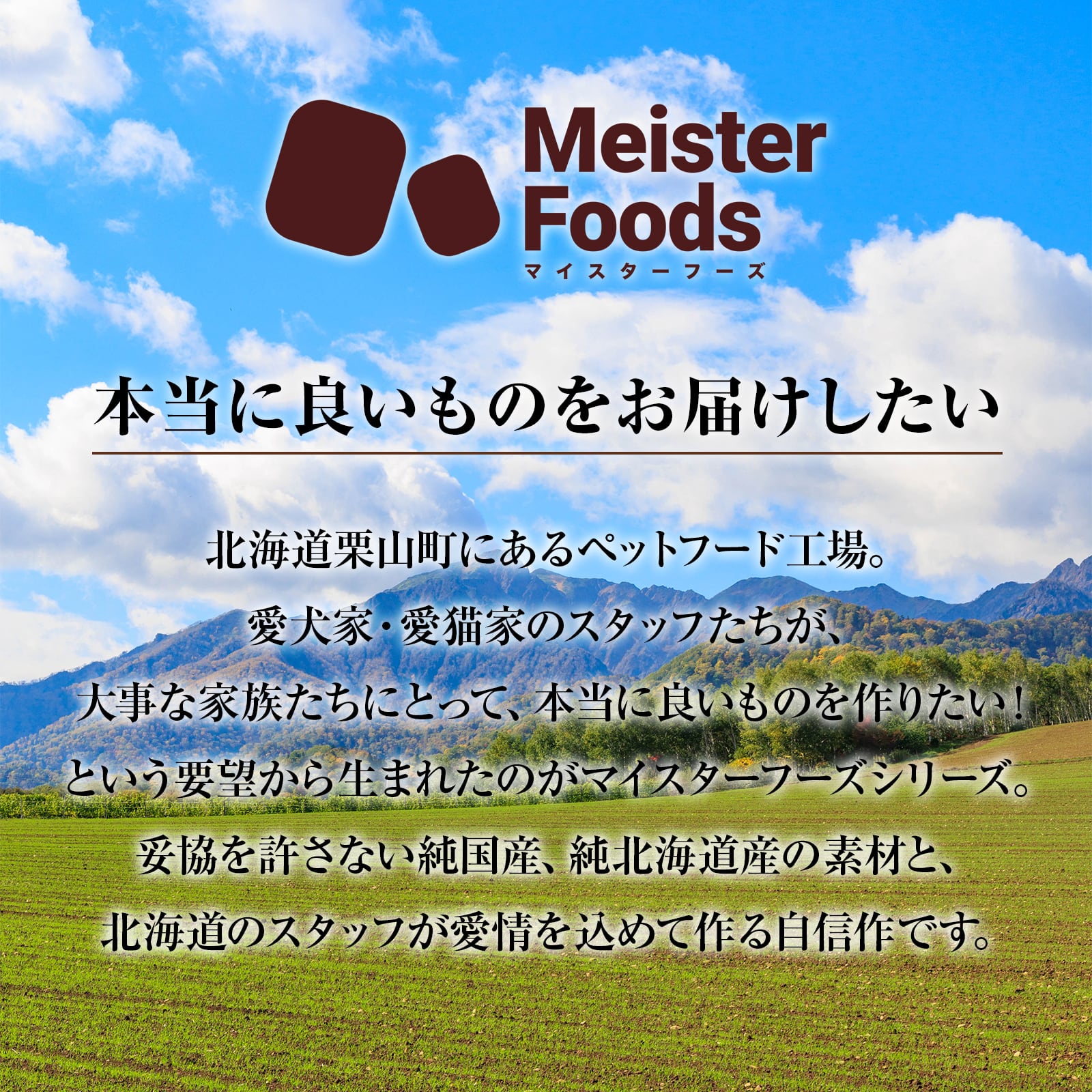 ドッグフードマイスター 三浦 保(みうら たもつ)が愛犬への深い愛情をこめてつくり上げた渾身の自信作「ミウラマイスターフーズ」の、グルテン・着色料・発色剤・化学調味料不使用の80/100シリーズ。北海道産鶏肉のみを使用した、非常に高品質な犬のおやつです。