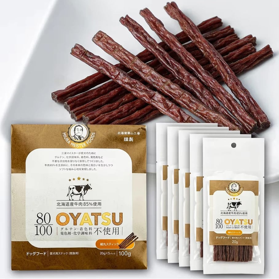 【犬用】80/100シリーズ OYATSU 北海道産 牛肉 85% 細丸スティック 100g (20g×5袋入)